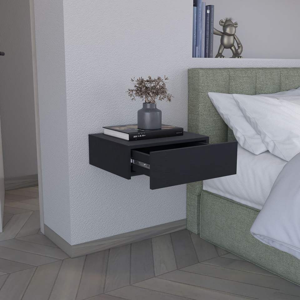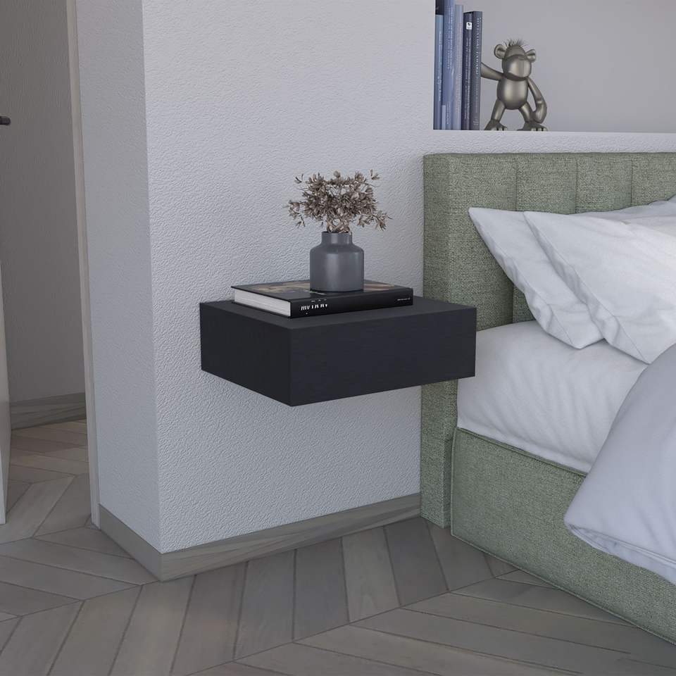 Comodino Moderno Sospeso da Parete Nero da 5 Pollici con Cassetto, Mensola Contemporanea per Camera da Letto