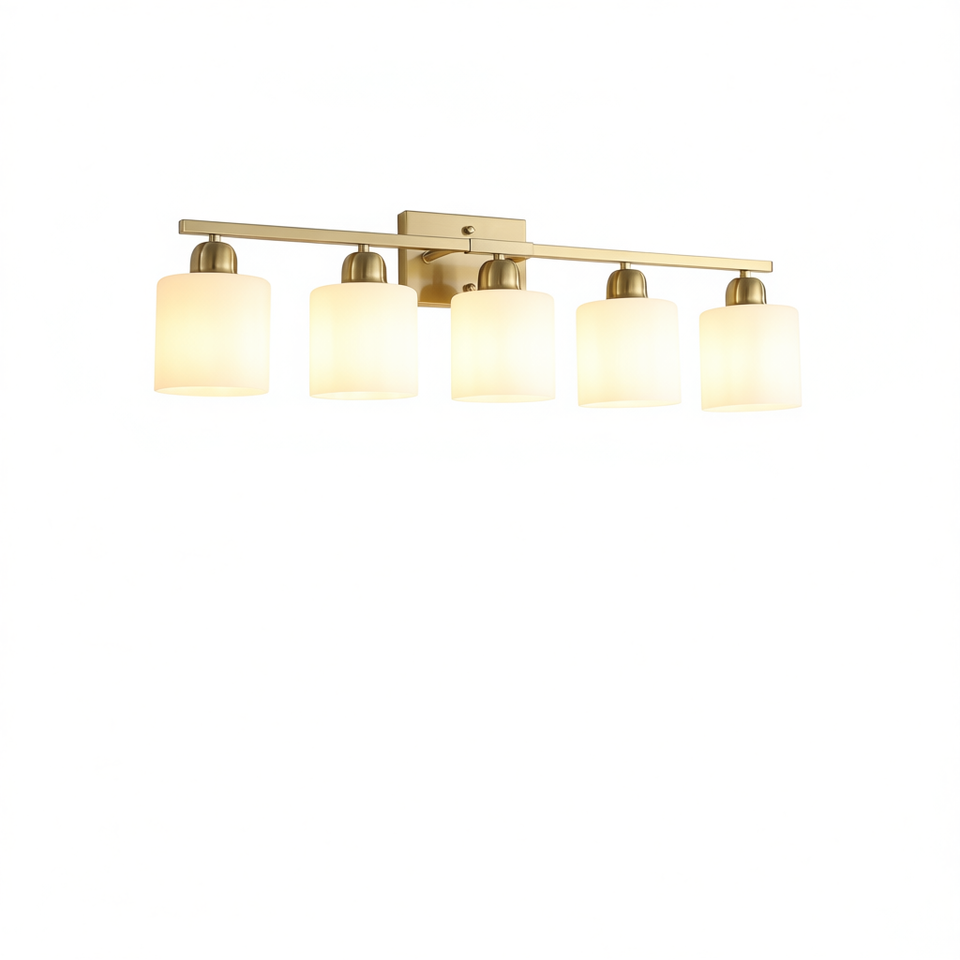 Modern 5-Light Gold Bathroom Vanity Light Frosted Glass E26 Wall Mount Dimmable 2700K Warm White Mirror Lamp