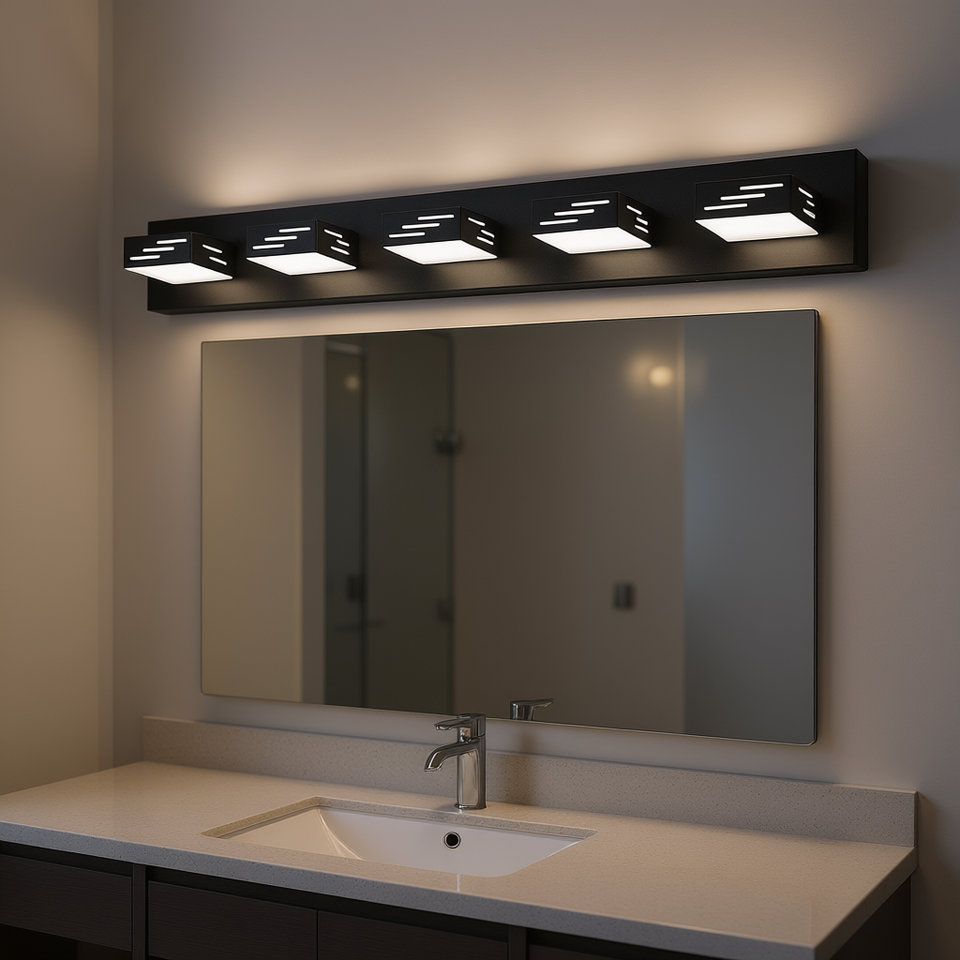 Lampada da Bagno Moderna a 5 Luci LED, 85 cm, Montaggio a Parete, Luce Bianca Calda, Apparecchio per Specchio