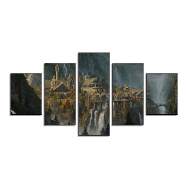 Modern 5-Panel Canvas Wall Art Ancient Castle Waterfall Landscape Spray Prints Home Decor Wholesale Cuadros Mural