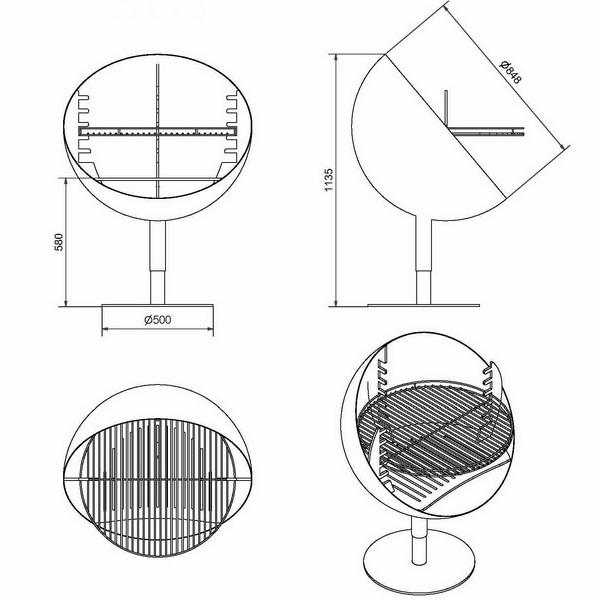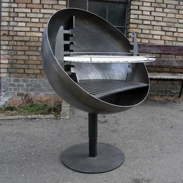 Modern 5-Person Bubble Steel Grill Adjustable Charcoal and Natural Gas Grill with Folding Trolley Height Features for Parties