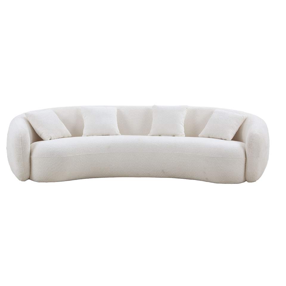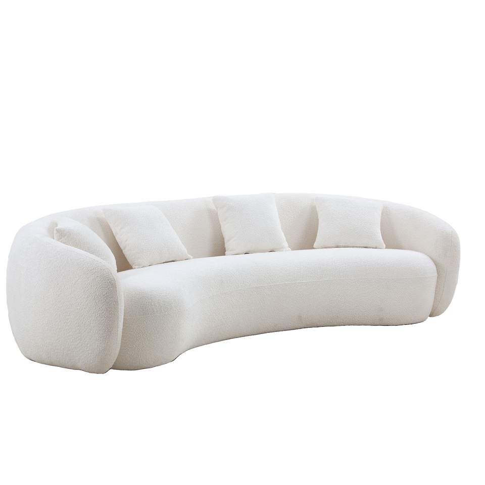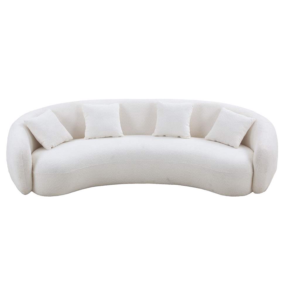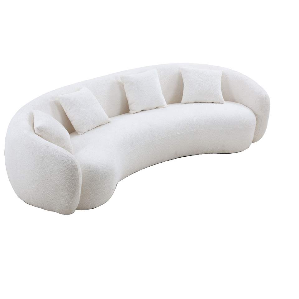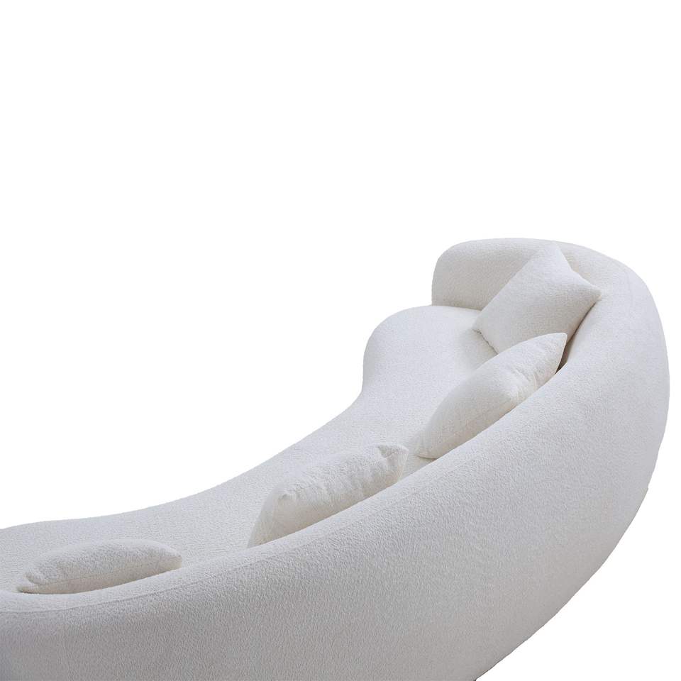 Divano Sezionale Moderno a 5 Posti in Bouclé 102, Divano Curvo a Mezzaluna per il Tempo Libero a 5 Posti in Velluto Teddy Beige per Soggiorno