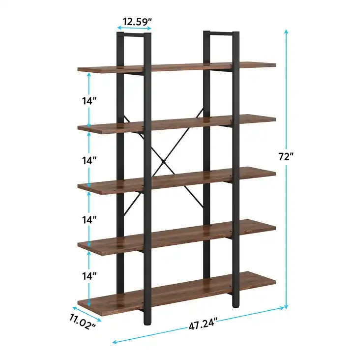 Moderna libreria a 5 livelli da scaffale per libri, Vintage stile industriale libreria per soggiorno camera da letto