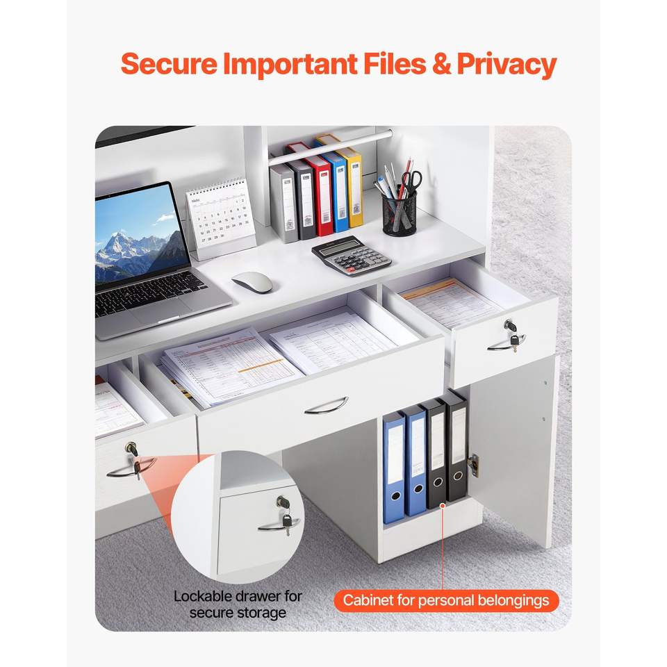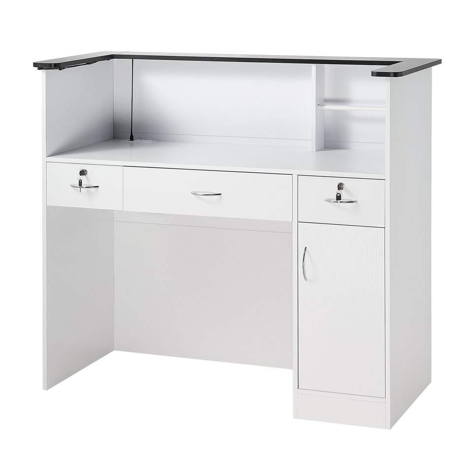 Moderna Scrivania da Reception Rettangolare da 50 Pollici con Striscia Luminosa e 3 Cassetti per Ufficio