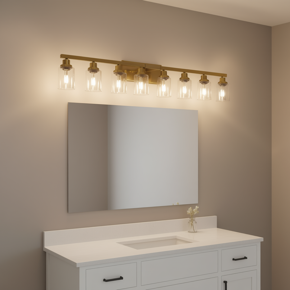 Modern 8-Light Bathroom Vanity Light 51 In Clear Glass Shades Iron Wall Mount Fixture For Mirror Dressing Table