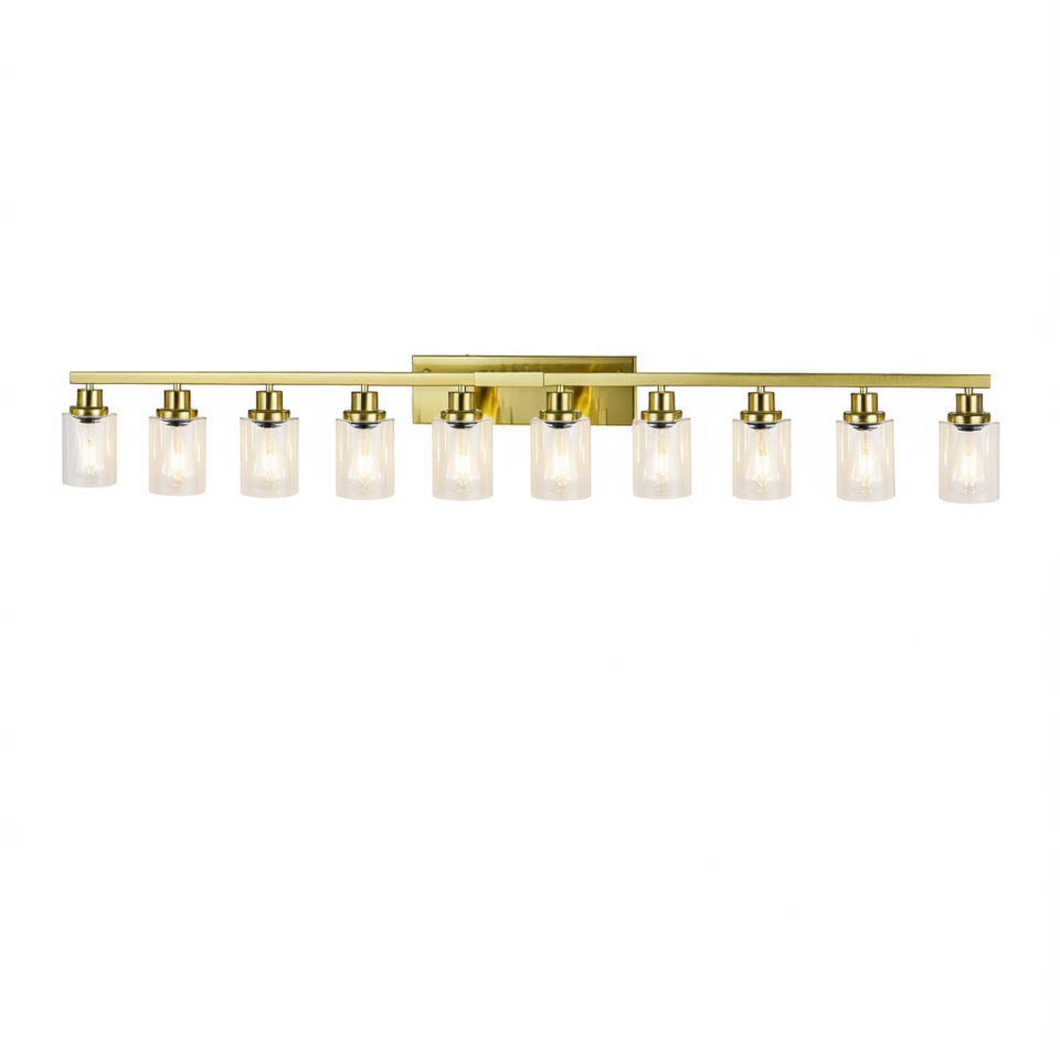 Modern 52-Inch Gold Bathroom Vanity Light 10-Light Wall Sconce LED Warm White Mirror Lamp for Bedroom Living Room