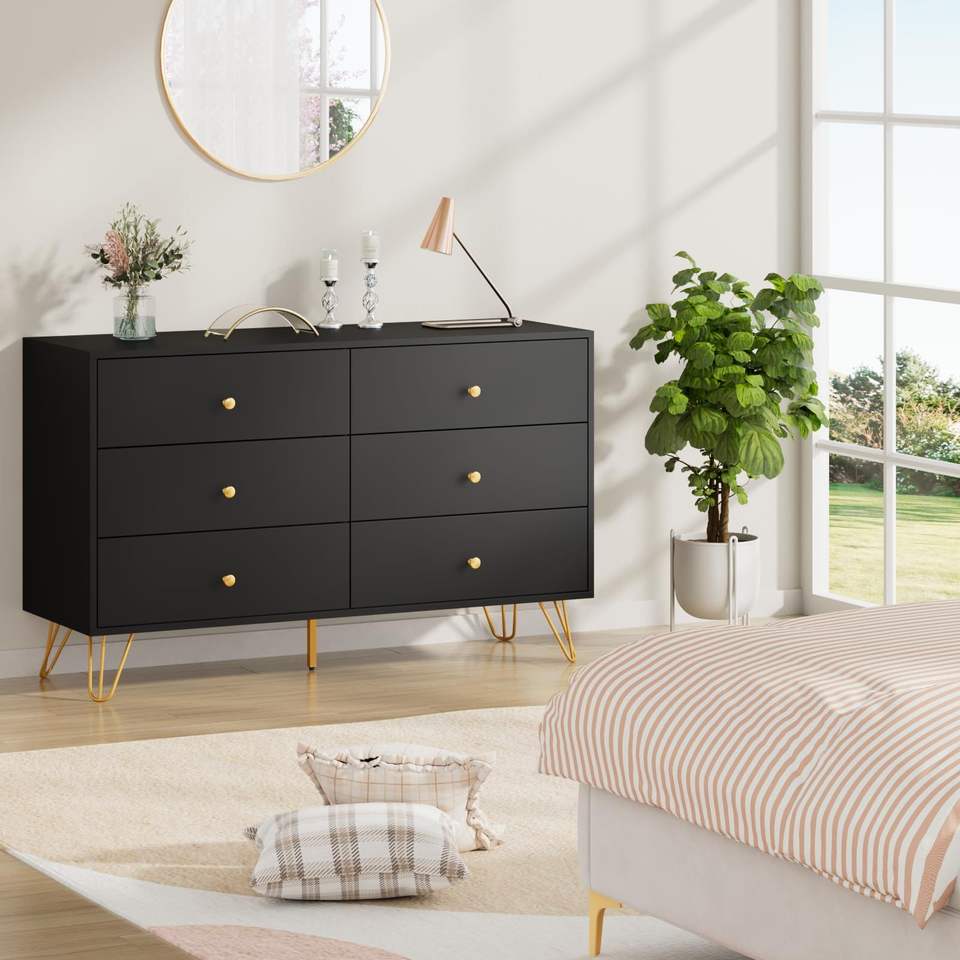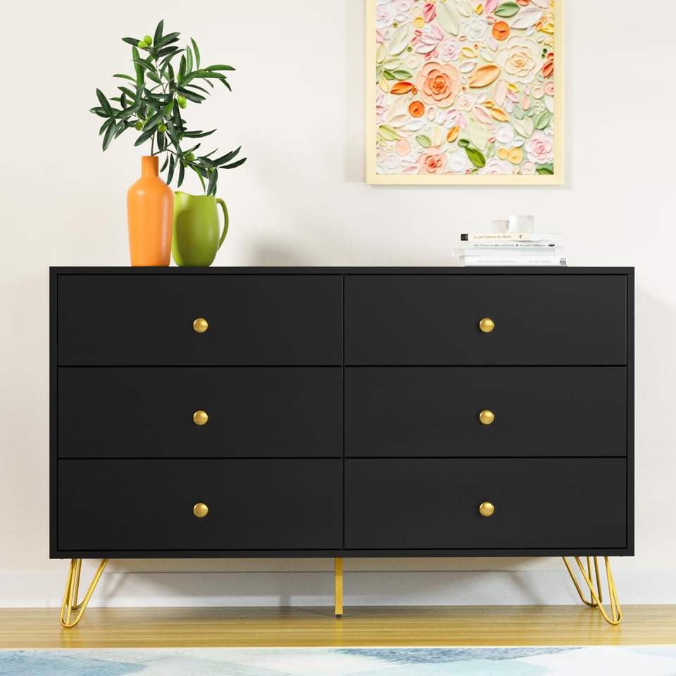 Comò moderno a 6 cassetti con maniglie dorate armadietto di stoccaggio per camera da letto o soggiorno armadio contemporaneo