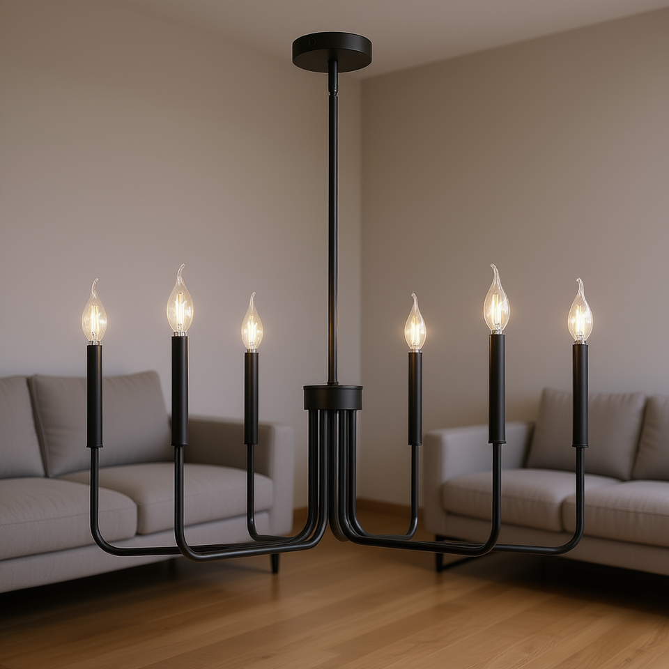Modern 6-Light Black Iron Chandelier E14 LED 2700K Warm White Adjustable Height Ceiling Pendant Light for Living Room