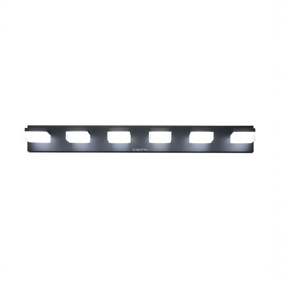 Moderna lampada a 6 luci a LED in ferro acrilico nero per specchio da bagno, modello D0100XFP3KU