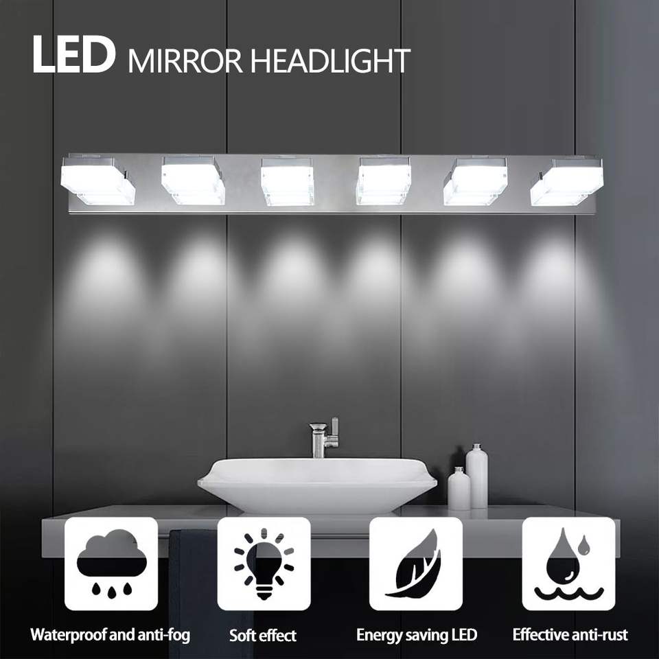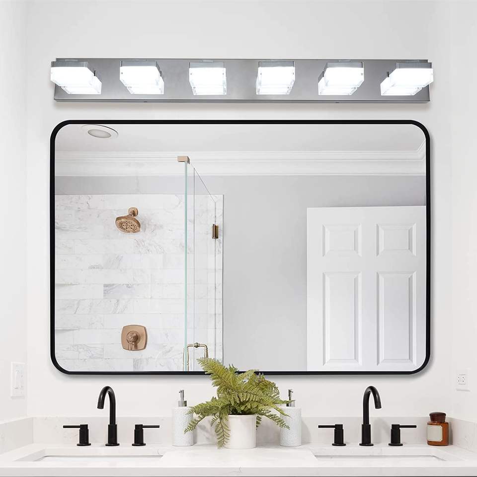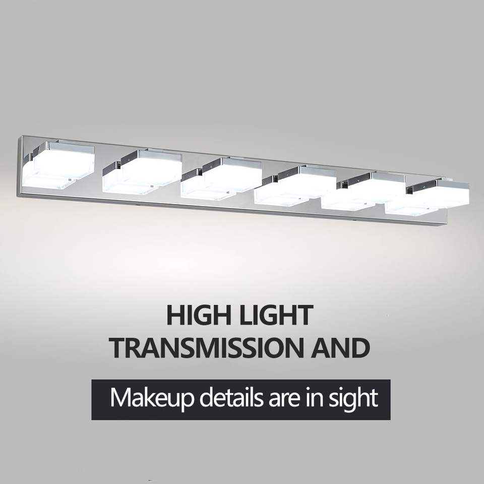 Moderna Lampada a 6 Luci LED Cromata per Specchio da Bagno e Tavolo da Trucco