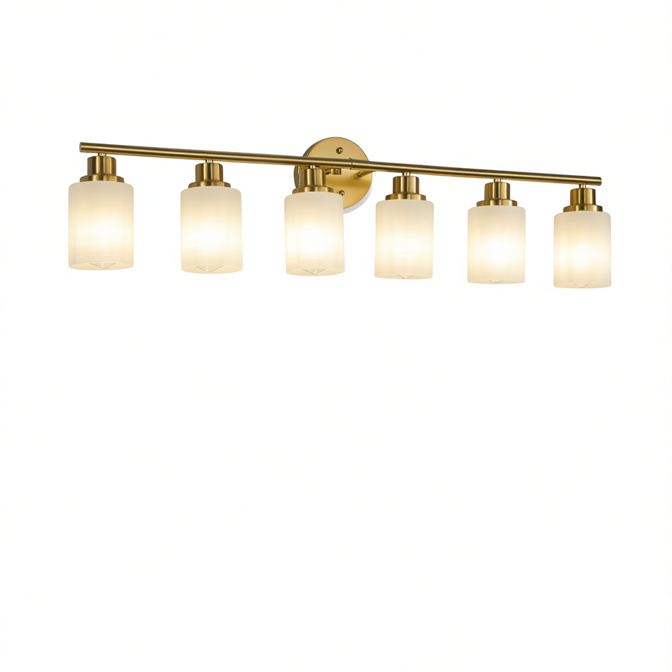 Modern 6-Light Golden Bathroom Vanity Light Frosted Glass Wall Mount LED Warm White Mirror Lamp