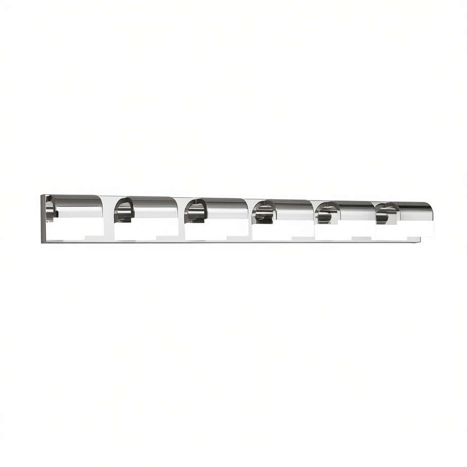 Lampada da Bagno Moderna a 6 Luci LED, Montaggio a Parete Sopra Specchio, Cromata, Luce Calda 3500K, IP44