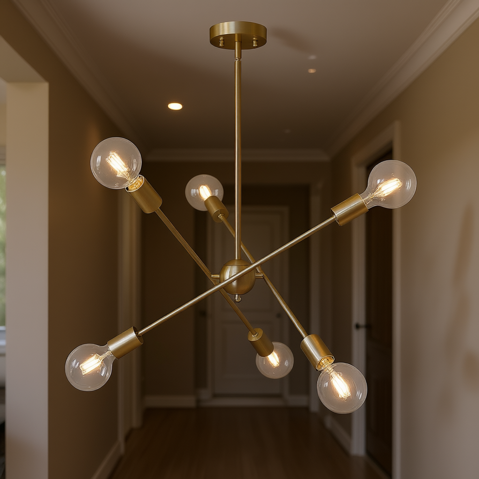 Lampadario moderno Sputnik a 6 luci in nichel spazzolato e oro, plafoniera per illuminazione a sospensione per corridoio