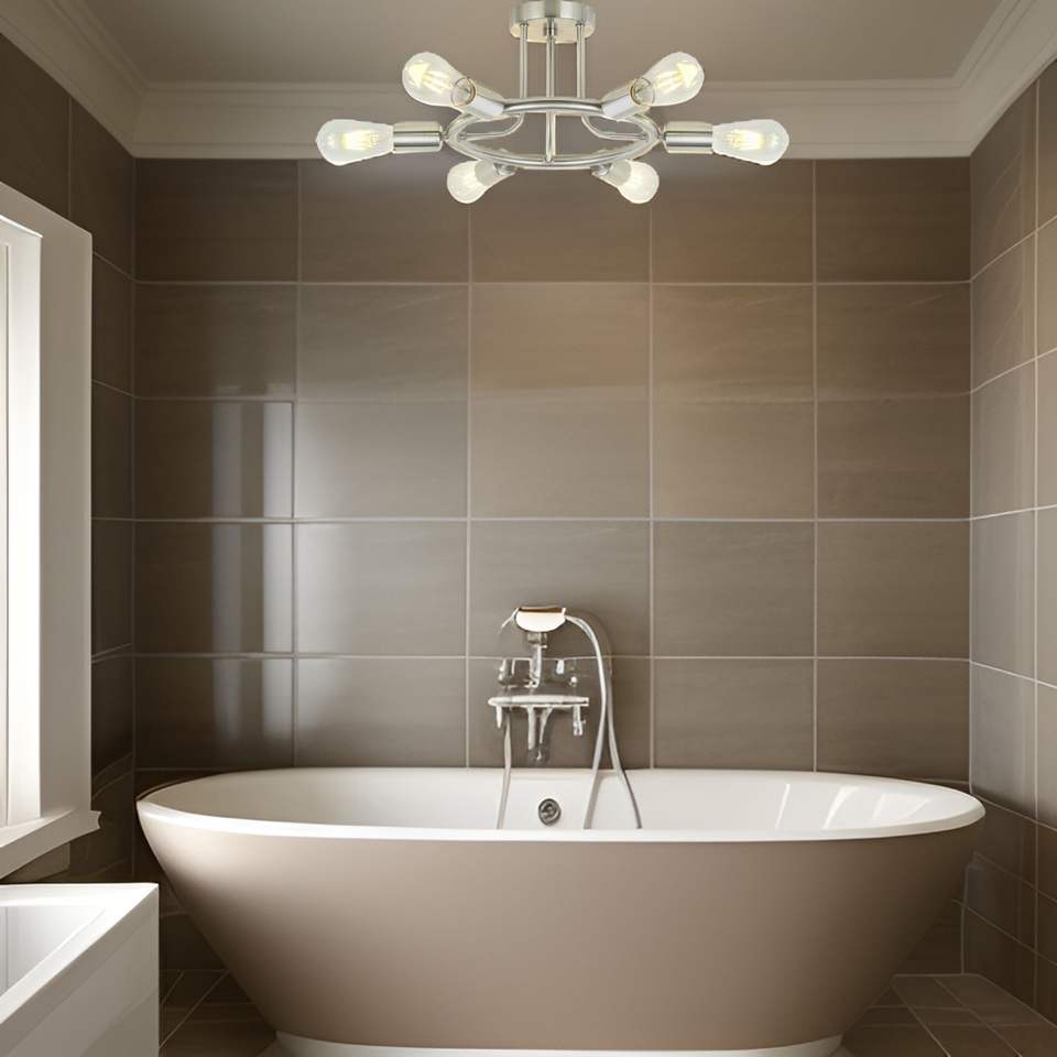 Modern 6-Light Sputnik Semi Flush Mount Ceiling Light Brushed Nickel Finish