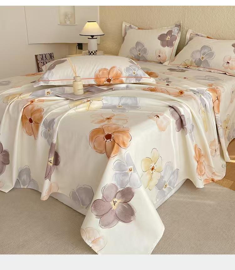 Modern 6-Piece Cotton Coarse Fabric Bedding Set Anti-Dust Mite 300TC Thread Count Bed Sheet Fitted Sheet & Pillowcases