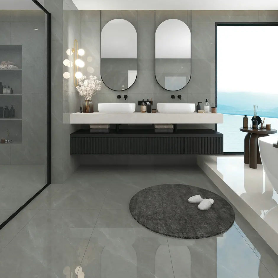 Piastrelle in Porcellana Smaltata Moderne 600x1200mm Design Marmo Grigio per Pareti Interne Forma Quadrata Parte della Famiglia dei Colori Verdi