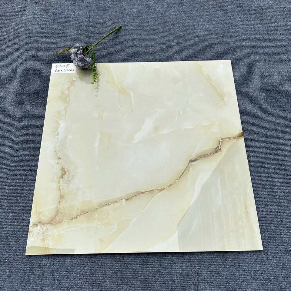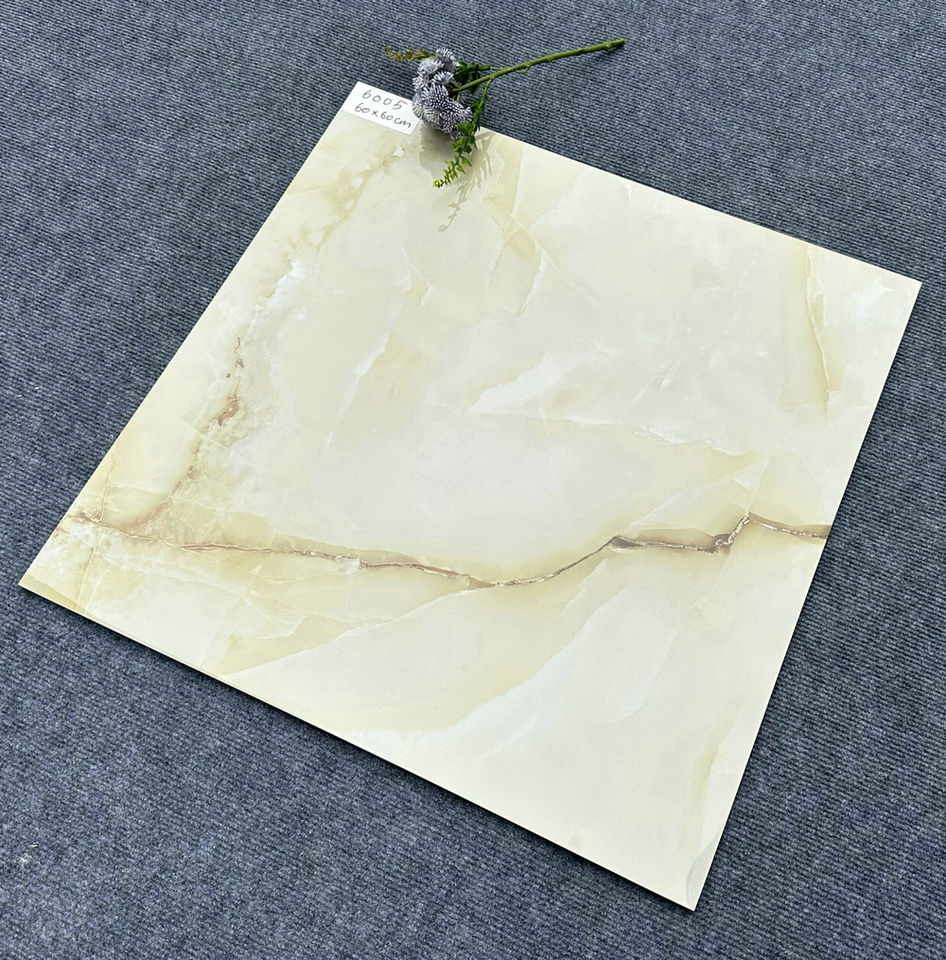 Moderna pietra di marmo di giada in ceramica Beige 60x60 sguardo lucido lucido per pavimenti interni piastrelle in gres porcellanato Design moderno