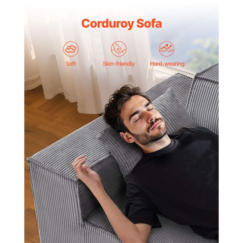 Divano Moderno a 2 Posti da 63 Pollici per Soggiorno, Divano in Velluto a Coste con Molle Insacchettate, Cuscini Morbidi, Seduta Confortevole