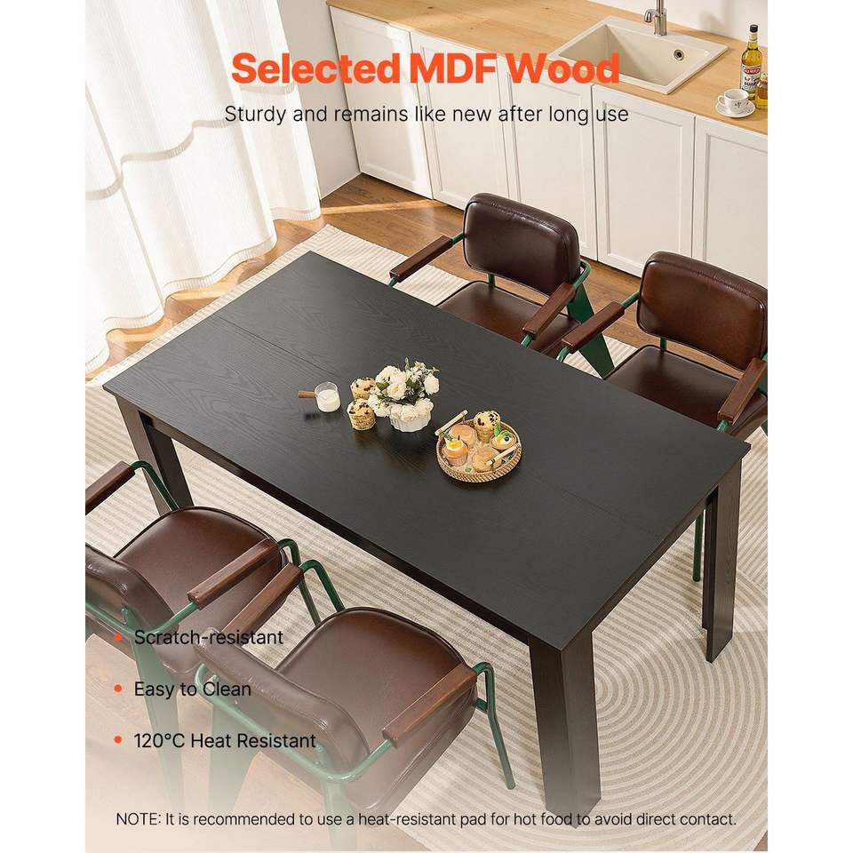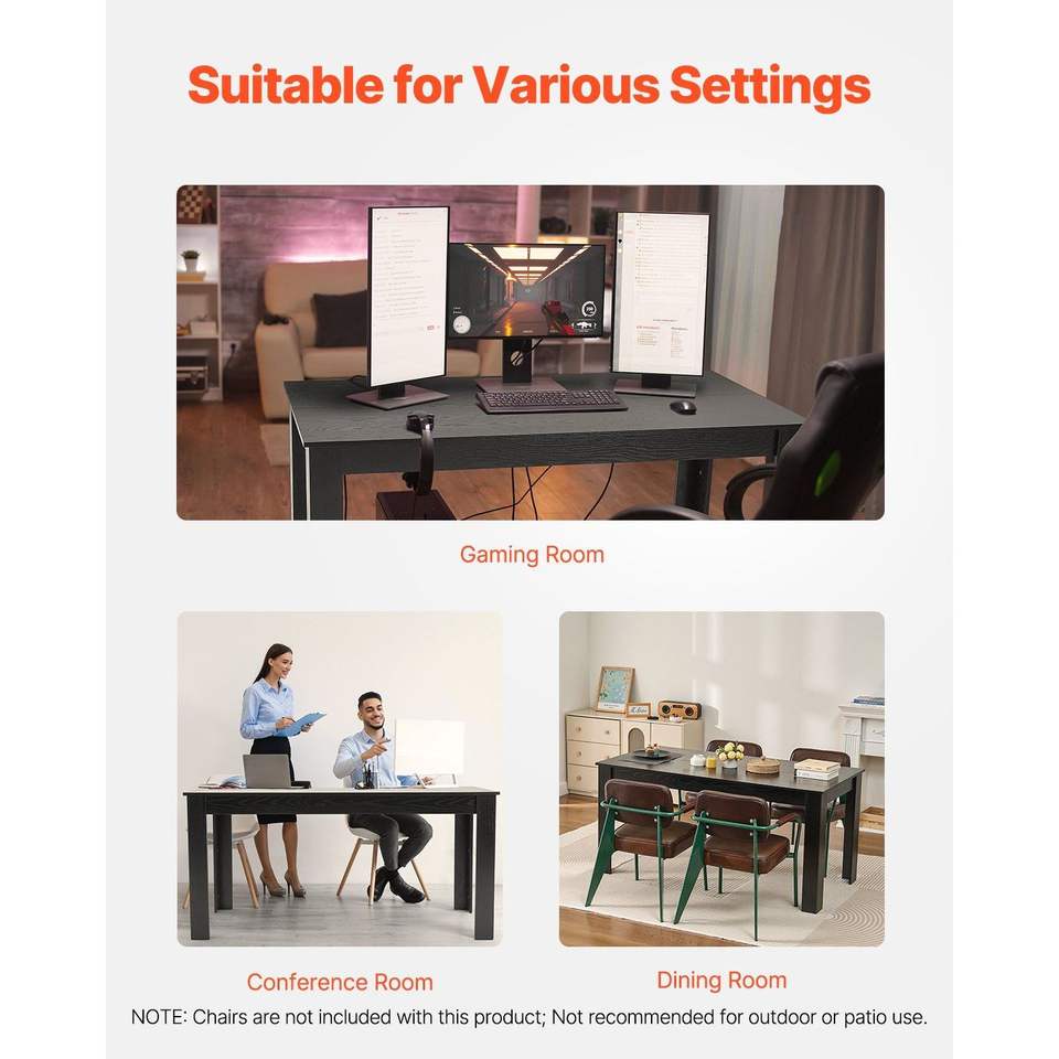 Modern 63-Inch Rectangle Dining Table Large Wood Conference Desk for 4-6 People 330LBS Capacity Black Kitchen Living Room
