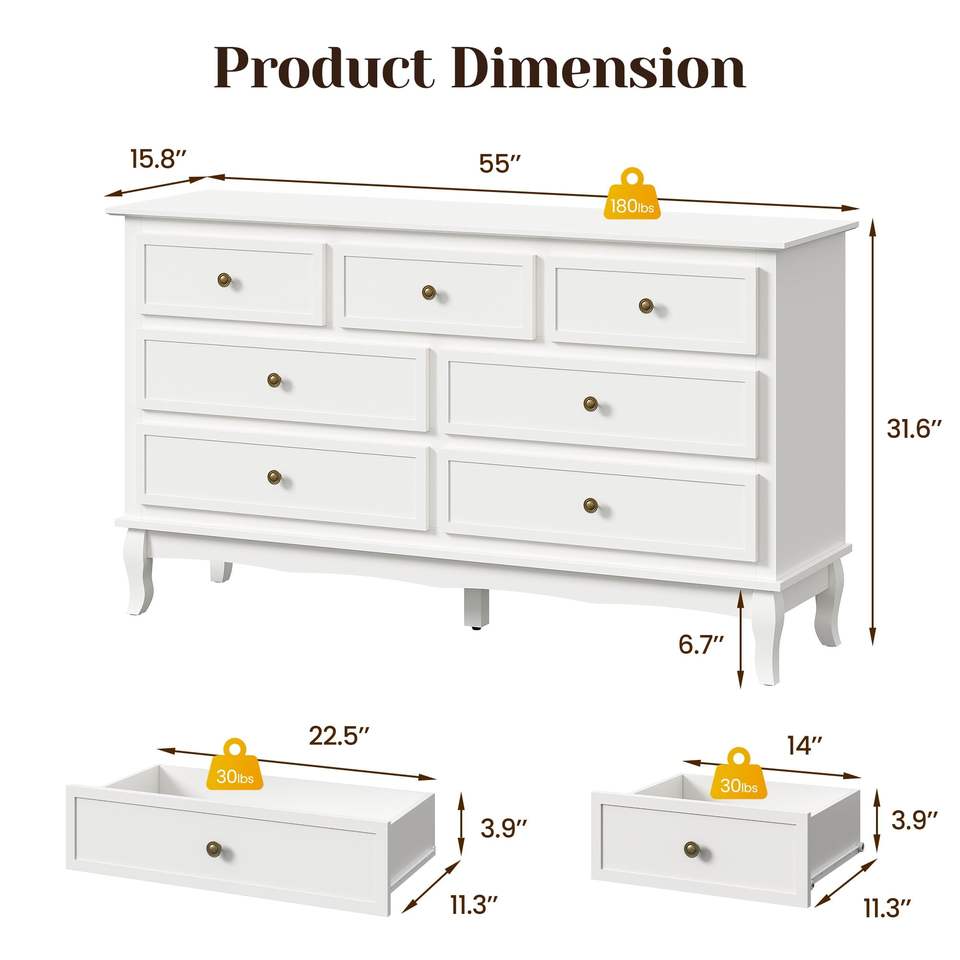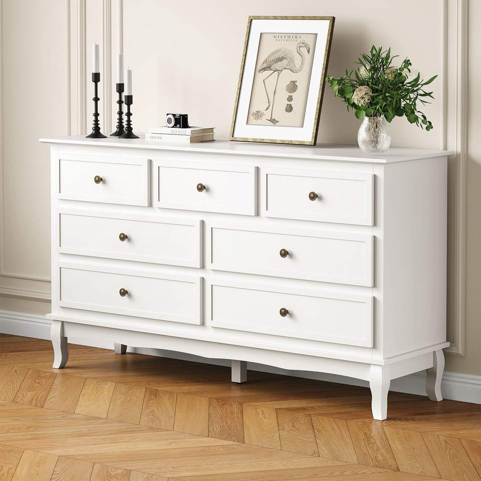 Credenza moderna a 7 cassetti con gambe in legno distintive e finitura bianca verniciata Accent CR