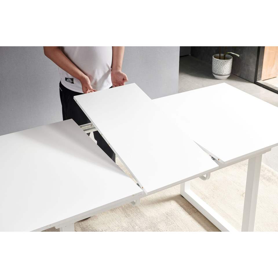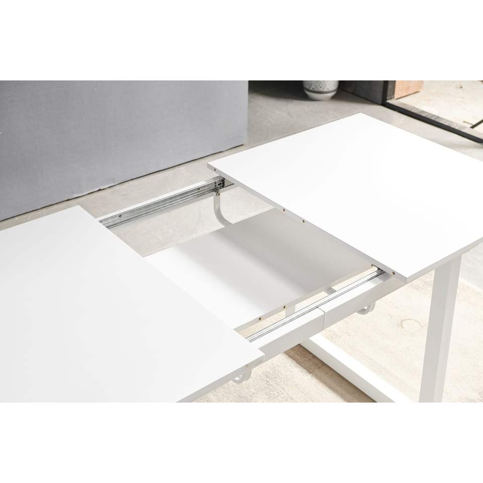 Tavolo da Pranzo Quadrato Allungabile Moderno 70,86 L x 31,5 P con Gambe in Metallo, Colore Bianco, Salvaspazio per Cucina e Soggiorno