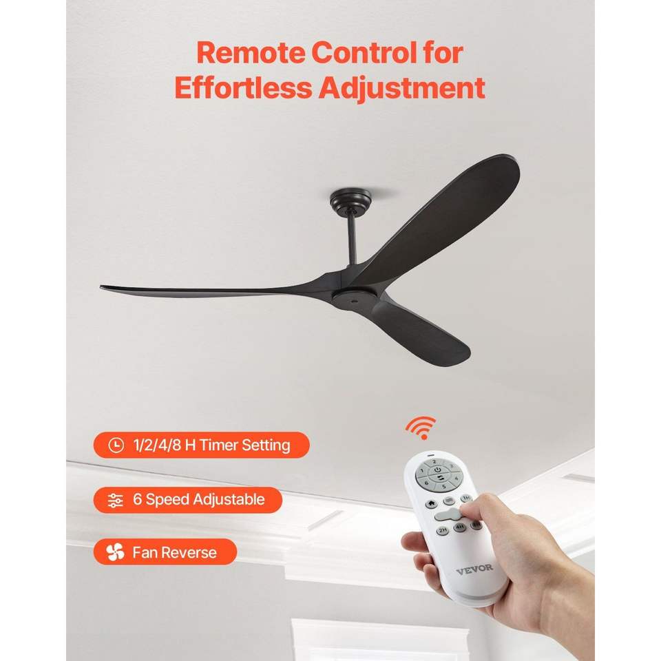 Moderno Ventilatore da 72 pollici a soffitto con telecomando a 6 velocità 3-blen-Blade reversibili motore a corrente continua a basso profilo supporto a filo nero per