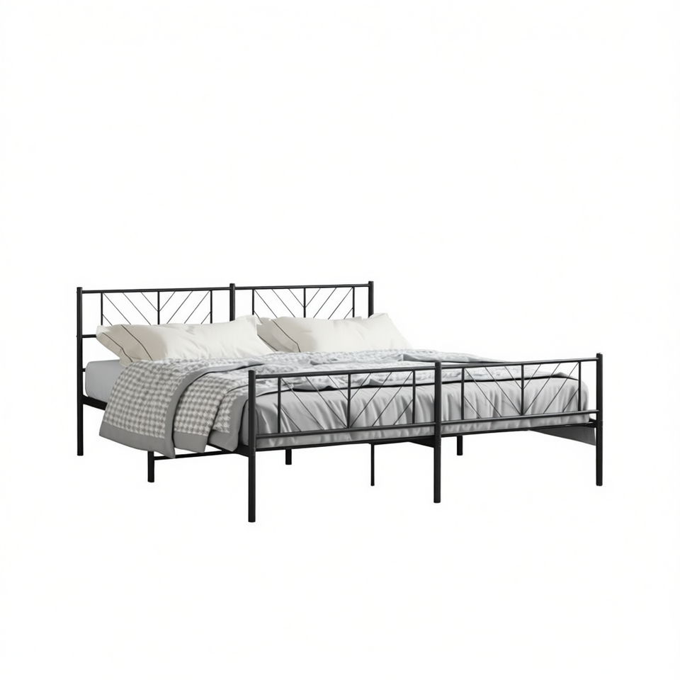 Moderno Letto in Metallo Nero con Struttura in Acciaio, Misura King Size, Base a Molle, Arredamento per Camera da Letto