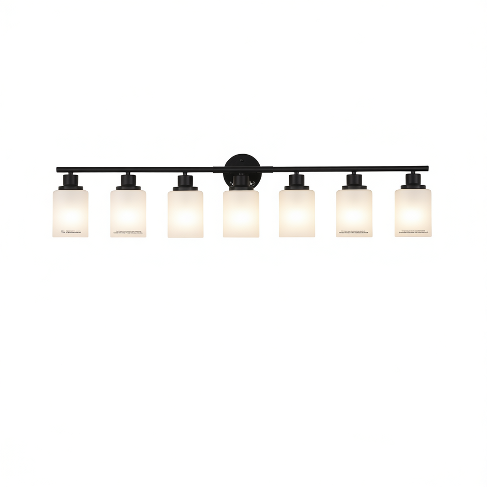 Modern 8-Light Bathroom Vanity Wall Sconce Frosted White Glass Black Iron Frame Contemporary Design for Bedroom Dressing
