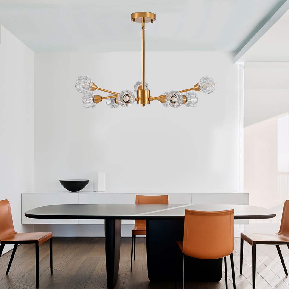 Lampadario Moderno a 9 Luci in Cristallo Dorato per Soggiorno, Camera da Letto, Sala da Pranzo, Cucina, Lampade a Sospensione per Tavolo