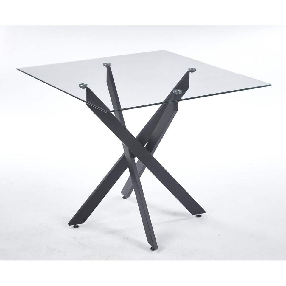 Tavolo da Pranzo Moderno Quadrato 9 Pollici con Piano in Vetro Temperato e Gambe Incrociate in Metallo Nero per Cucina o Soggiorno Salvaspazio