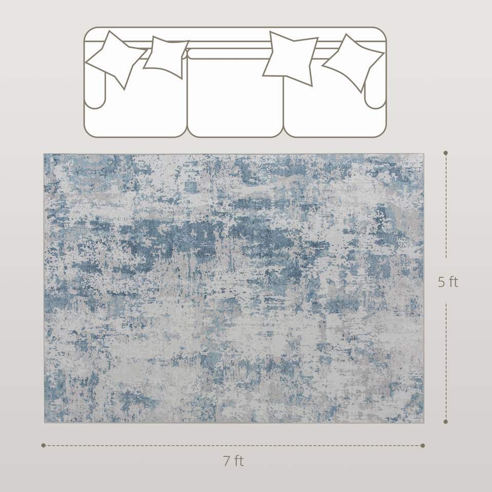 Tappeto Moderno Astratto 5x7 Antiscivolo Lavabile in Lavatrice Blu per Soggiorno, Camera da Letto o Sala da Pranzo
