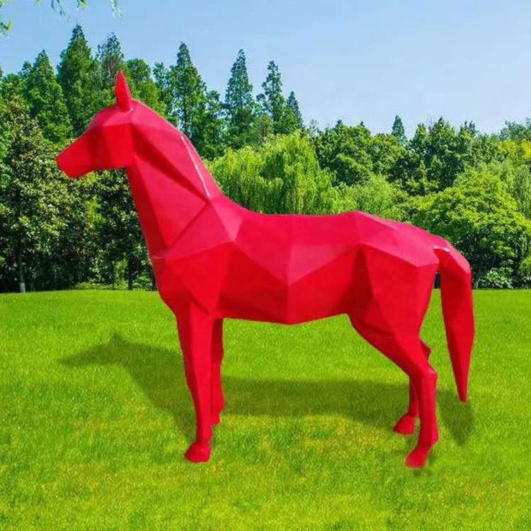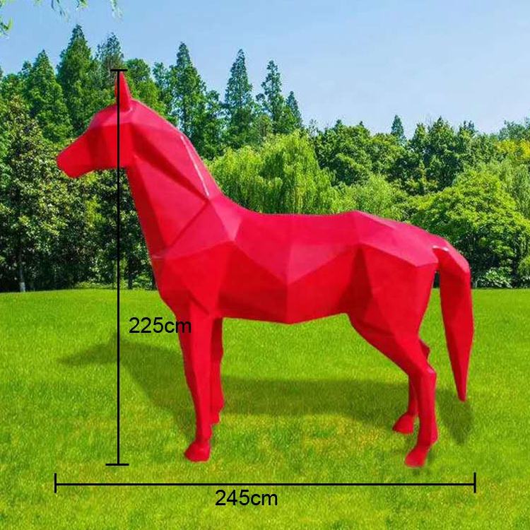Scultura del cavallo della vetroresina della sezione del taglio di colore rosso all'aperto della statua animale astratta moderna