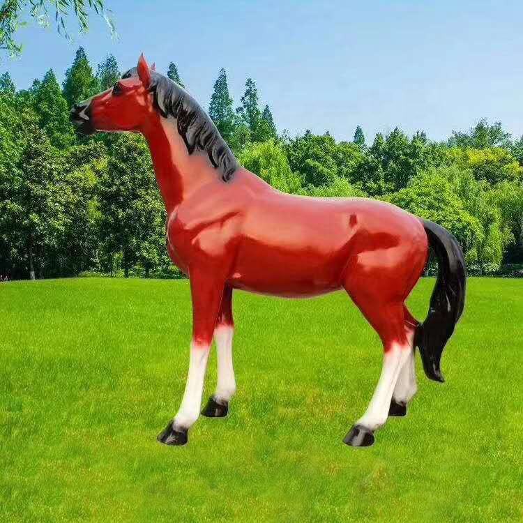 In fibra di vetro taglio sezione rossa statua del cavallo