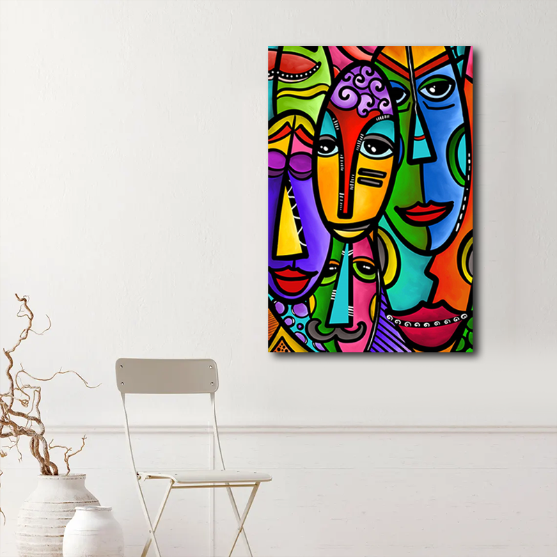 Stampa digitale di arte decorazione per la casa con facce astratte moderne stampate su tela ad acquerello