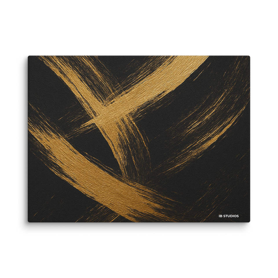 Quadro Moderno Astratto con Tratti Dorati su Tela, Eco Dorato Elegante, Telaio in Legno Massello Tensionato a Mano, Staffe di Montaggio