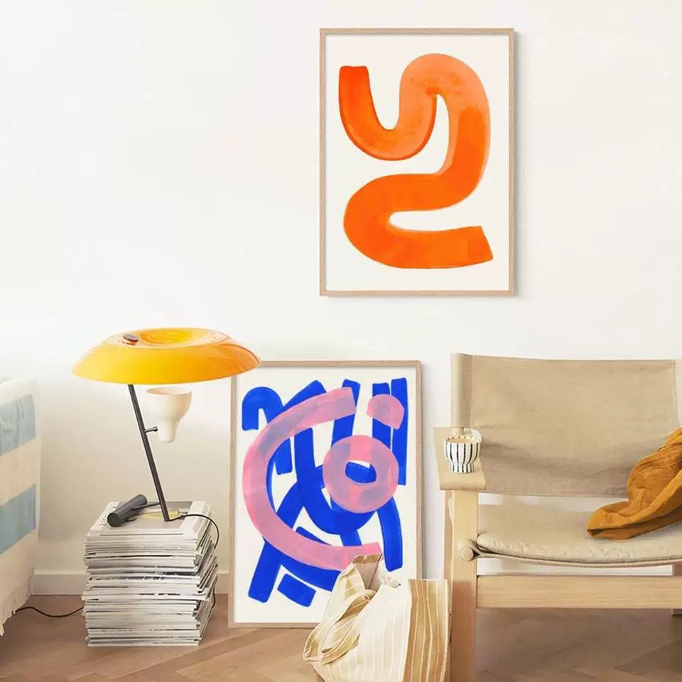 Modern Abstract Mid Century Art Deco Watercolor Brush Strokes Poster Handmade Orange Canvas Oil Painting Wall Art Hanging Home