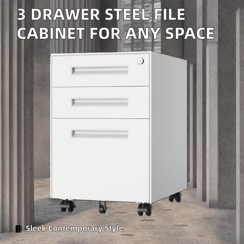 Moderno Armadio Portadocumenti in Acciaio con 3 Cassetti Regolabili per Soggiorno e Ufficio