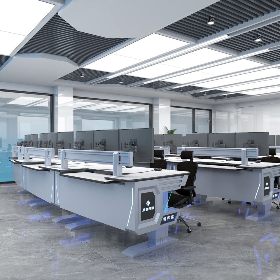 Tavolo Console Moderno Regolabile per Monitoraggio Impianti Chimici, Centri di Comando Ferroviario e Portuali, con Design Ecologico