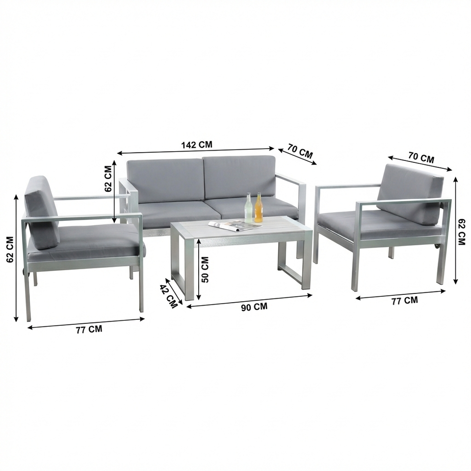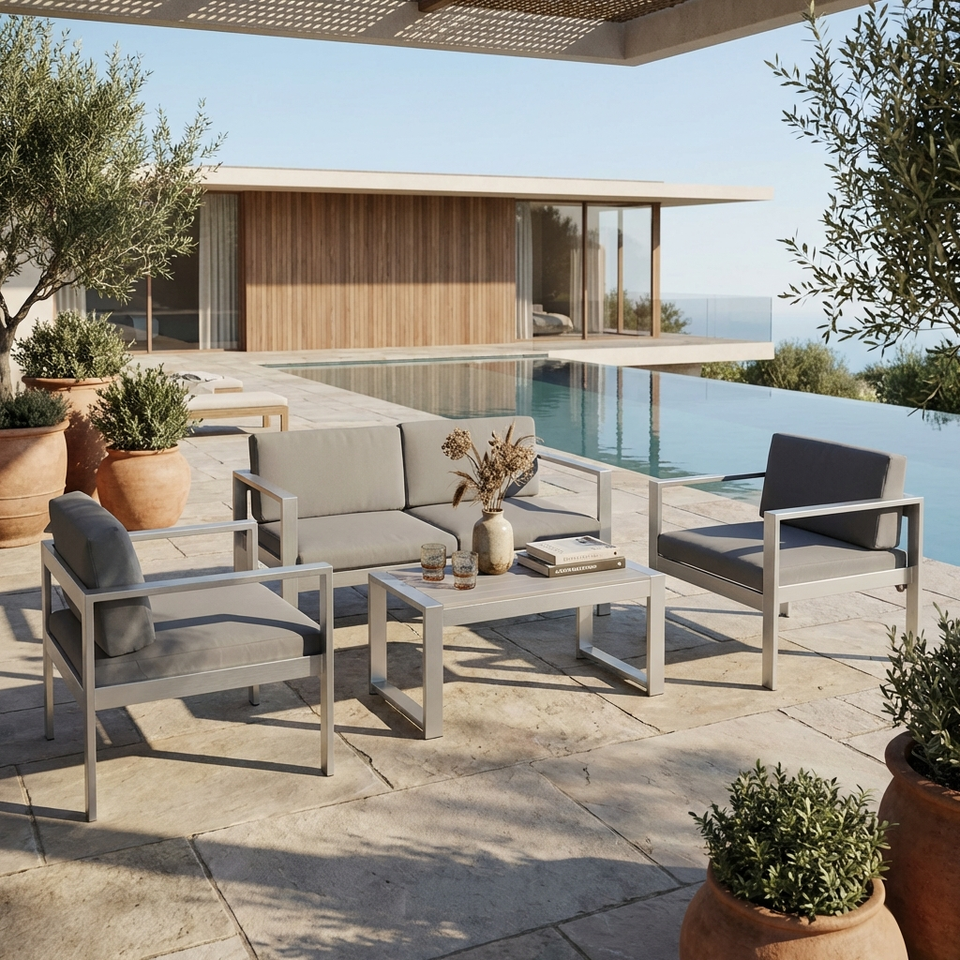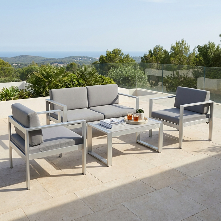 Set Divano da Esterno Moderno con Telaio in Alluminio, Resistente alle Intemperie e Antiruggine, Modulare con Tavolino Laterale Integrato