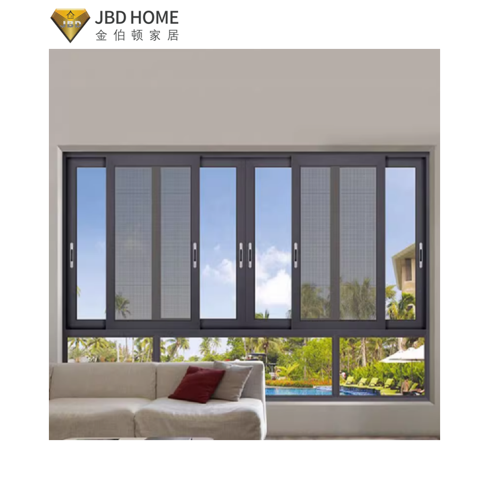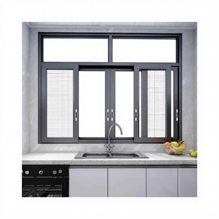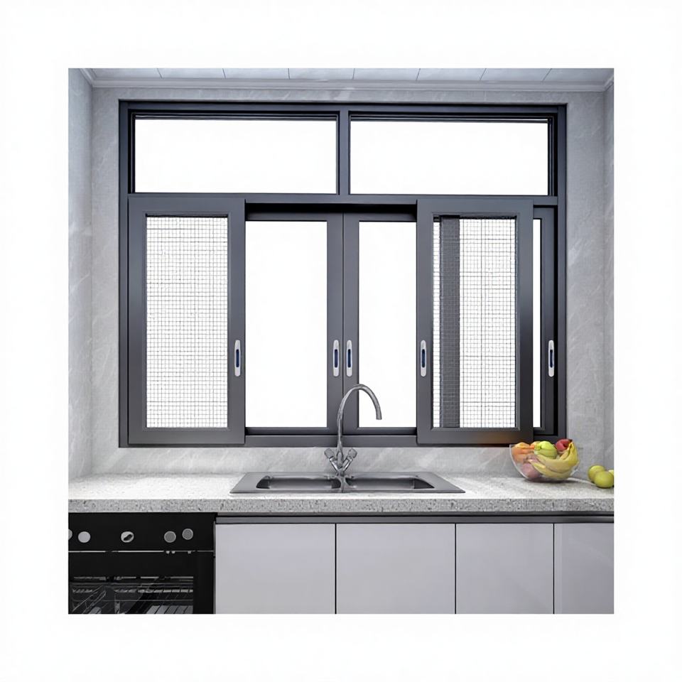 Modern Aluminum Sliding Window Integrated Stainless Steel Mosquito Net One-Touch Lock Mechanism (Soundproof for Kitchen Use)