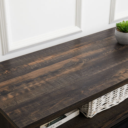 Modern Antique Brown FCJ TV Stand 58.11 W X 15.79 D X 32.36 H Large Storage Space Sliding Door 23 Fireplace Insert TV