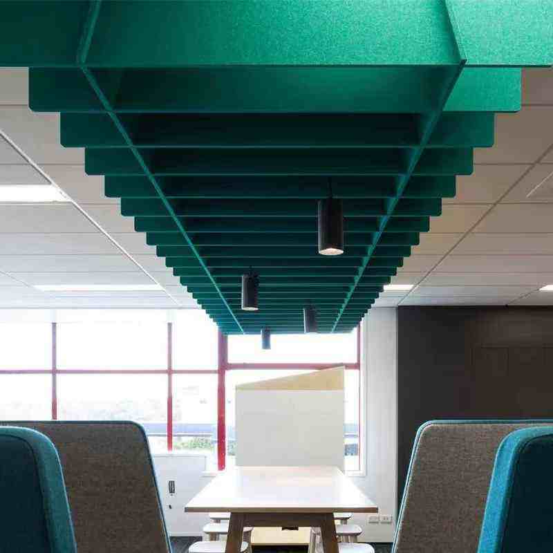 Pannelli Acustici Moderni per Appartamenti, Deflettori Acustici Sospesi in PET Poliestere con NRC 0.9 e Spessore 9mm