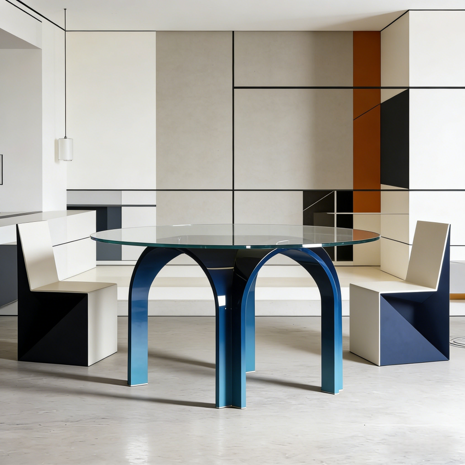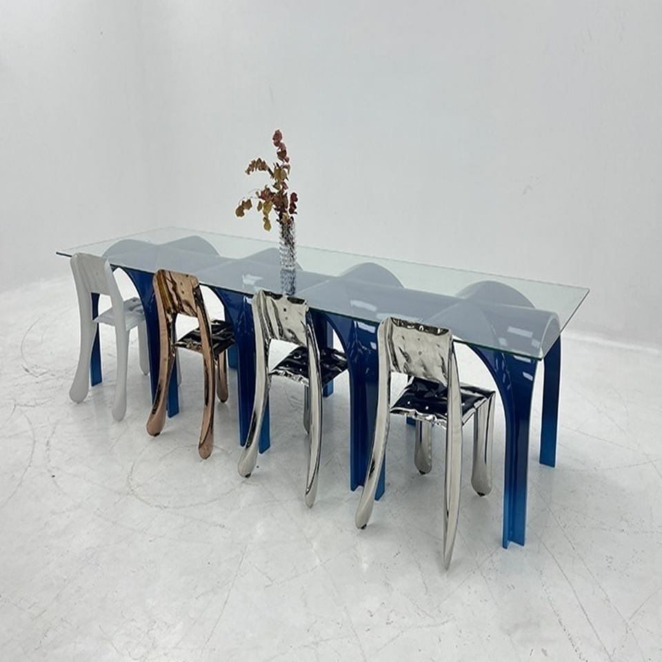 Tavolo da Pranzo e Conferenza Moderno in Fibra di Vetro a Forma di Ponte ad Arco per 12 Persone, Piano in Vetro Rotondo per Arredamento di Ville, Uffici e Showroom