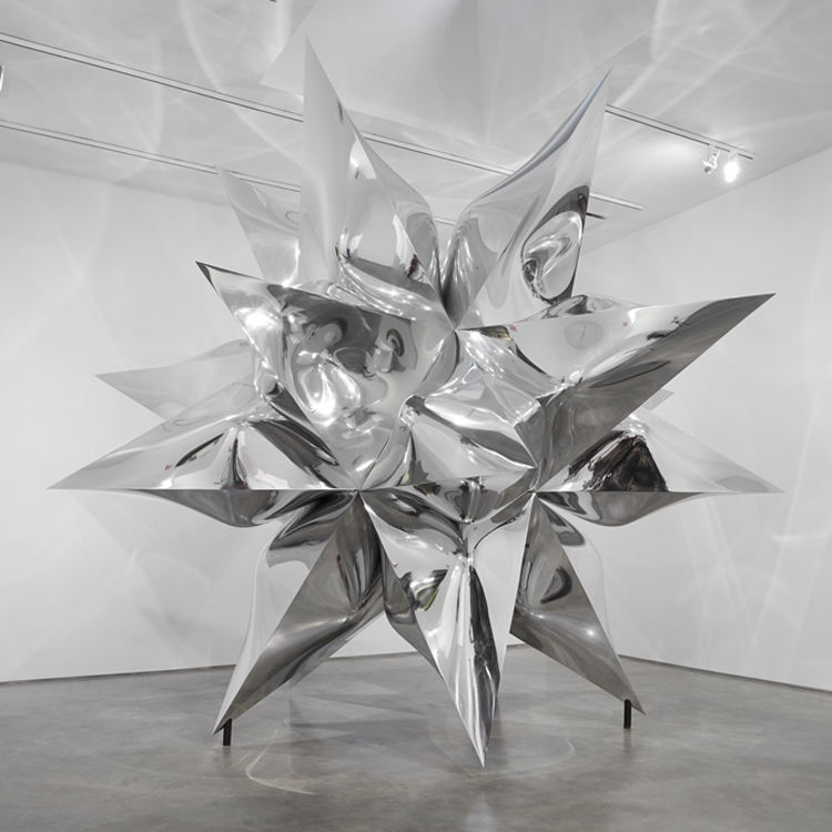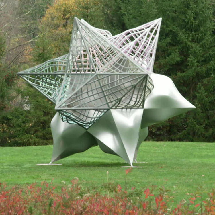 Scultura moderna in metallo di fama, scultura a forma di stella in acciaio inossidabile di Frank Stella
