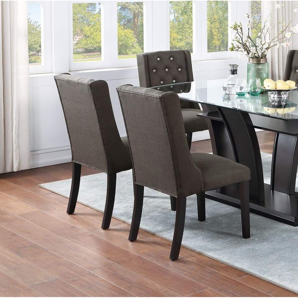 Set di 2 Sedie da Pranzo Moderne in Tessuto Nero Cenere Trapuntato con Design Wingback in Legno di Gomma e MDF per Cucina e Sala da Pranzo