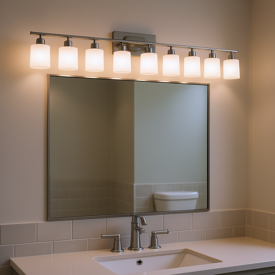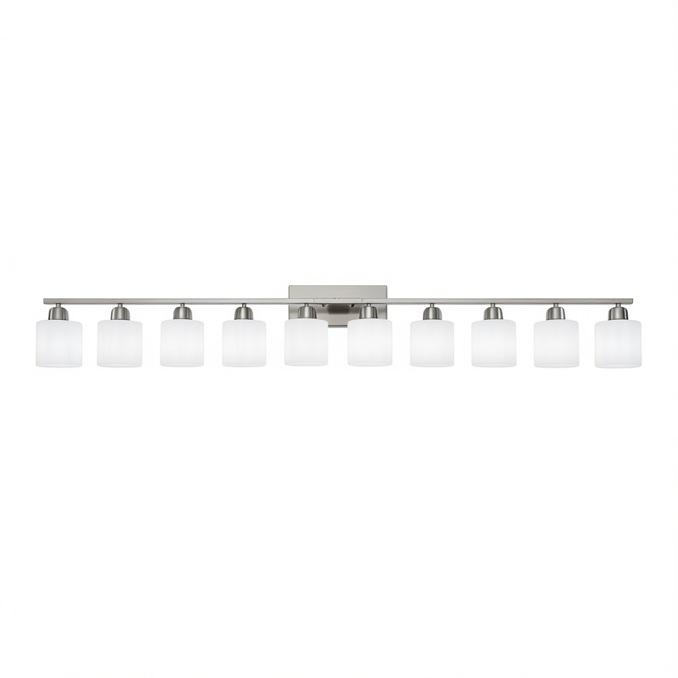 Lampada Moderna per Specchio da Bagno a 10 Luci, Applique a LED in Nichel con Paralume in Vetro, Luce Bianca Calda per Camera da Letto e Soggiorno
