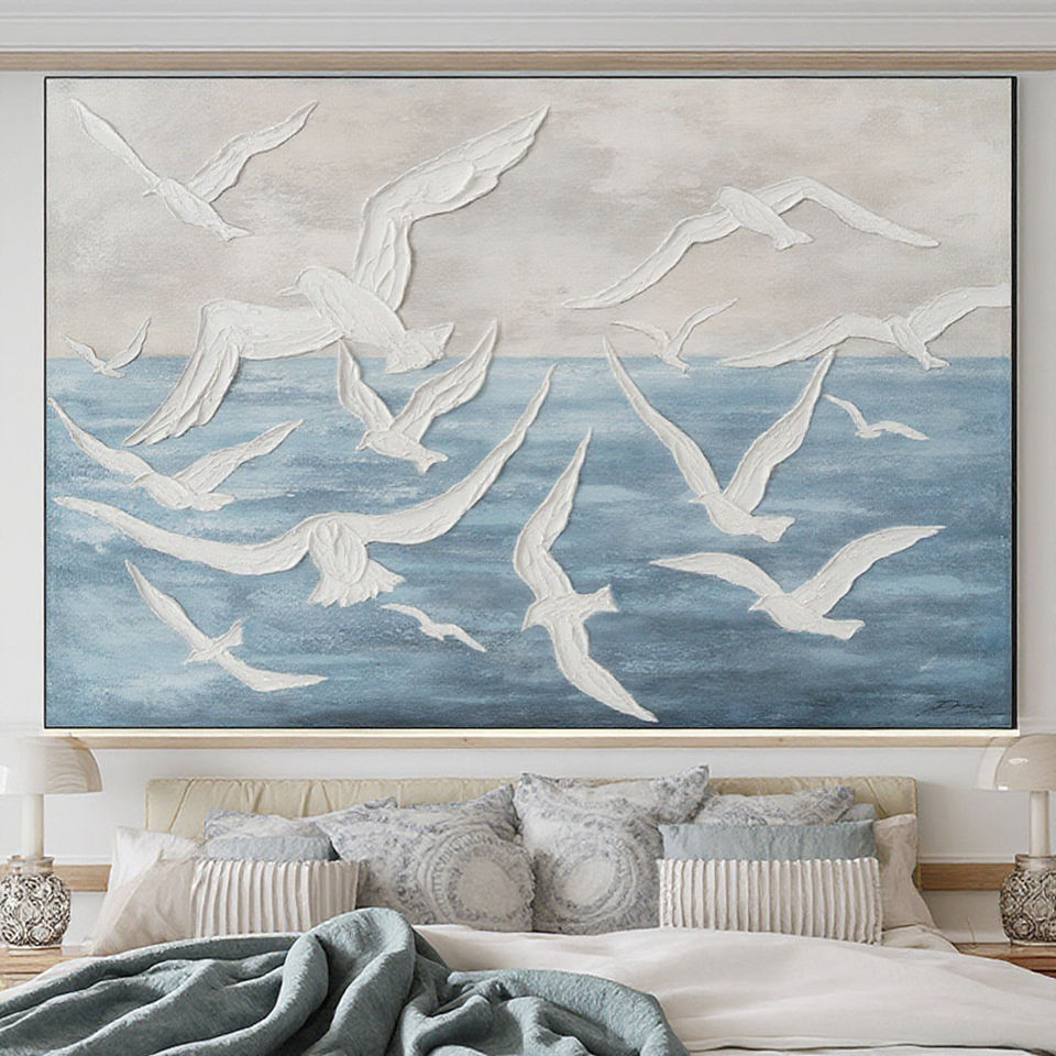 Immagine moderna dello scenario della spiaggia pittura decorativa blu Seascape gabbiano Poster da parete arte tela stampa per soggiorno