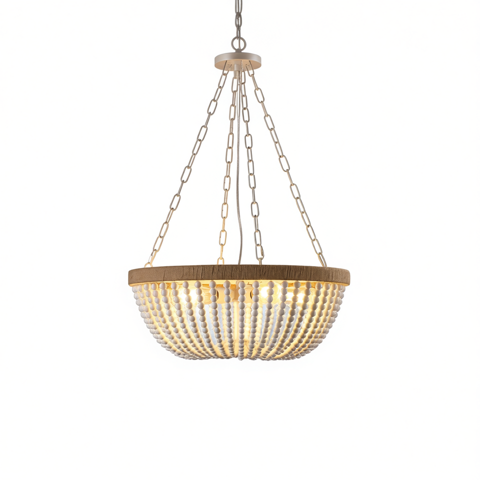 Lampadario moderno con perline, 22 pollici, a forma di ciotola in legno di quercia bianca, luce LED per soggiorno, sala da pranzo, camera da letto