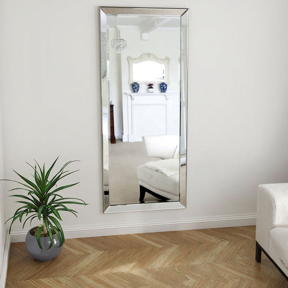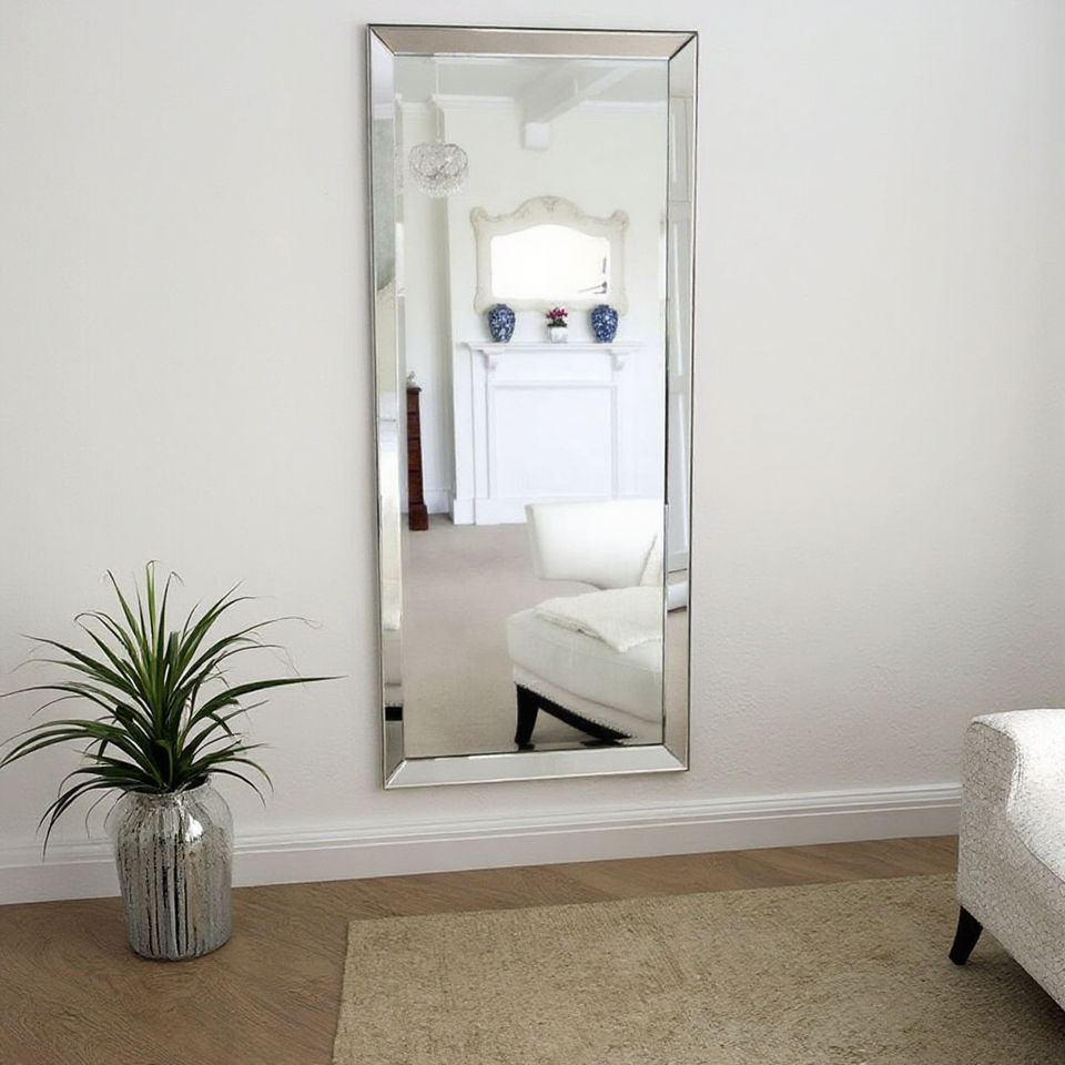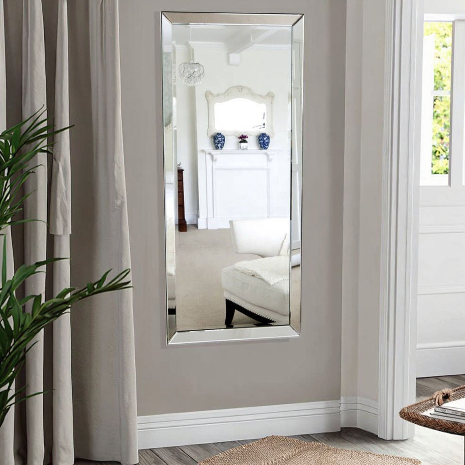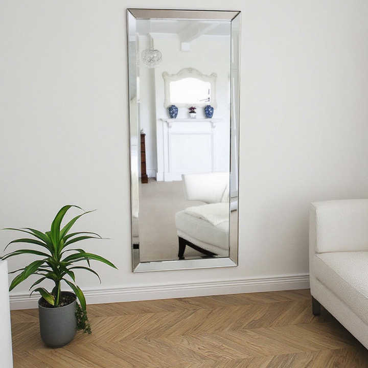 Specchio da Parete Moderno con Bordo Smussato, Cornice in Metallo, a Figura Intera, per Salone di Bellezza, Casa e Uso Decorativo
