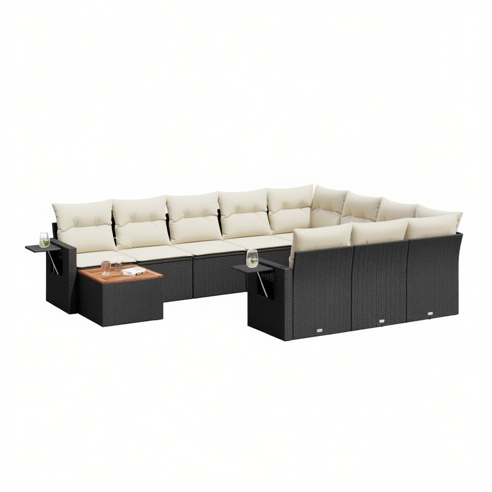 Set di divani da esterno moderni neri e crema con tavolo per arredamento da giardino